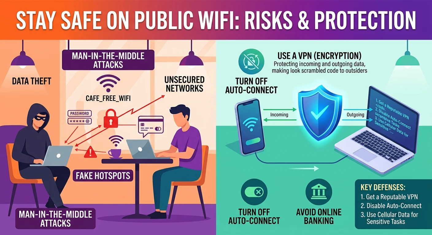 We all do it. You sit down at a local cafe, order a latte, and immediately look for the free internet connection. It feels completely normal. But here is the truth. The public WiFi risks you face every time you log on are much higher than you probably realize.