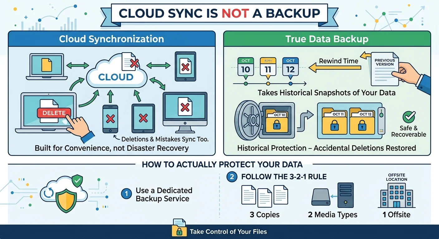 Cloud synchronization is built for convenience, not for disaster recovery.